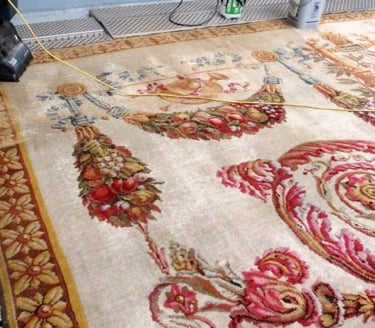 Diagnostic : état trame/chaîne, densité de nœuds, fibres & teintures.