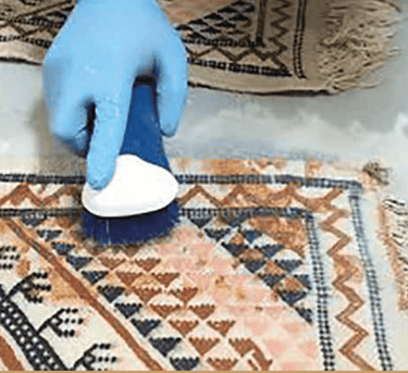 Technique traditionnelle pour conserver l'authenticité des tapis, offrant un soin respectueux du patrimoine textile.